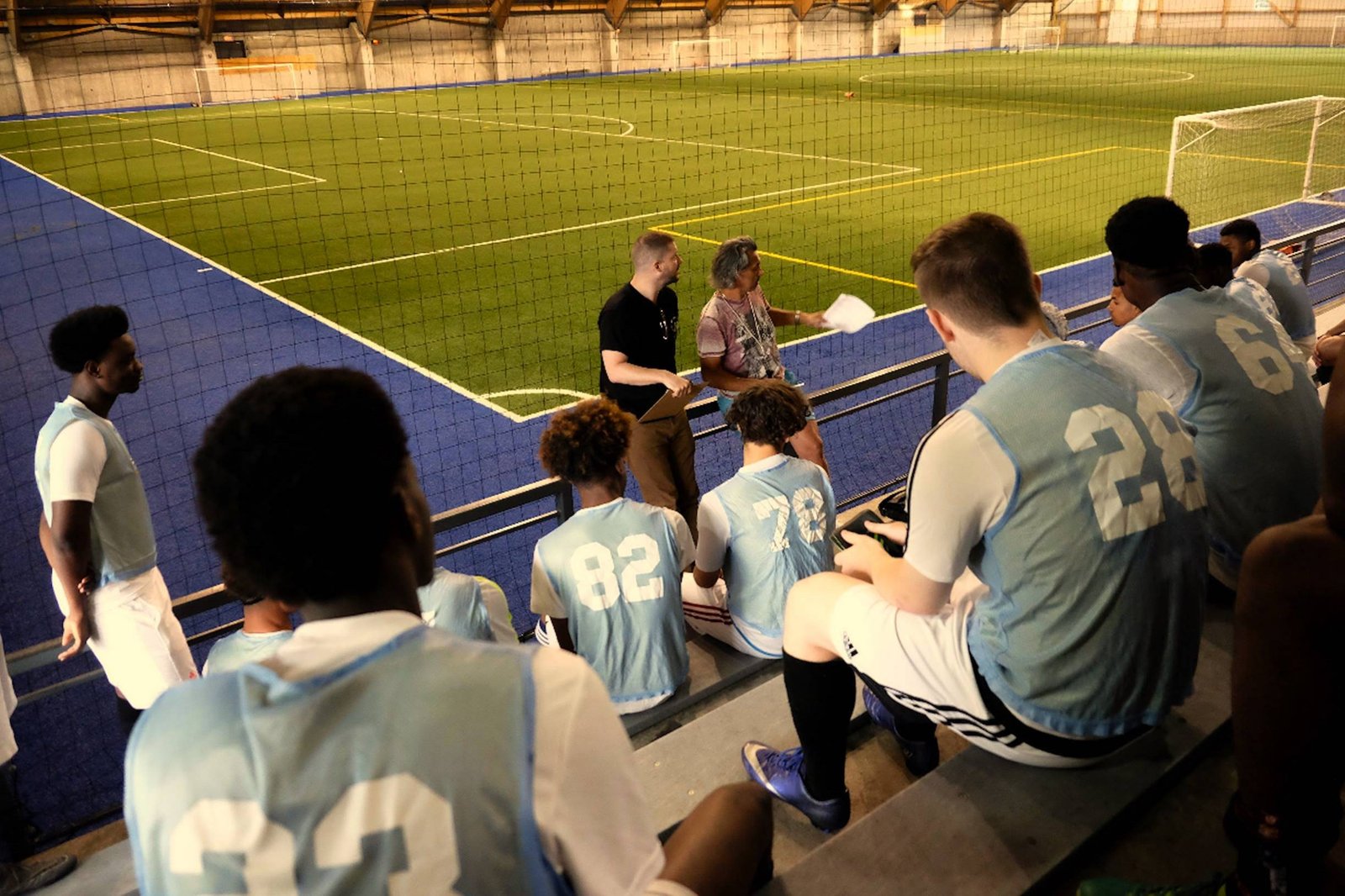 Les joueurs rencontrent M. Vincent Dufour DG de JMG Football, M. Gregory Lefort agent pour Black Skills et Andrea Puzo Dir. de Projet pour l’Institut JMG. Suite à une brève introduction et explication de ce que l’on recherche le tout débute avec des séances de jeux 7 vs 7 .
